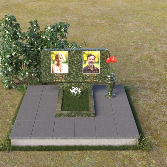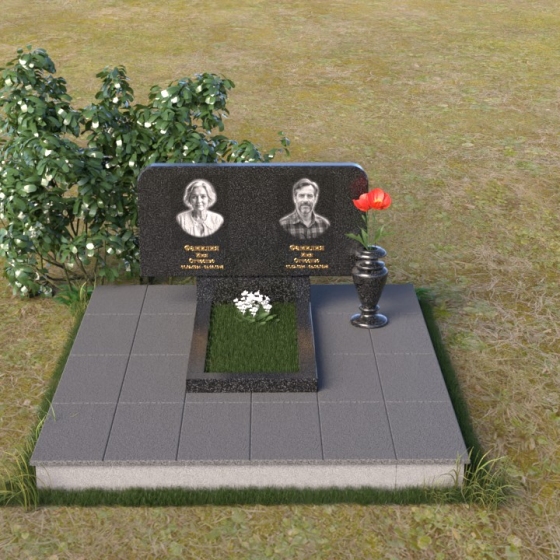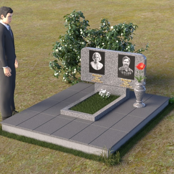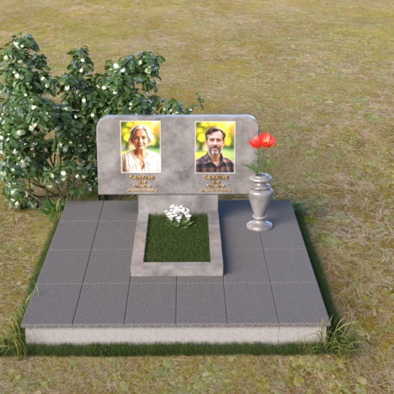 Оформление: Для данной формы стелы идеально подойдет гравировка портретов в овальной или прямоугольной форме. Расположение портретов может быть как симметричным, так и асимметричным, в зависимости от ваших предпочтений. Имена и даты жизни рекомендуется располагать под портретами, используя элегантный шрифт с засечками. Также можно добавить эпитафию, отражающую личность усопшего и вашу любовь к нему.