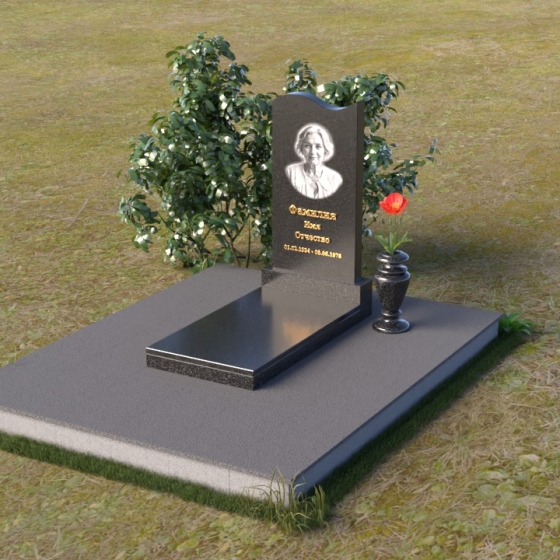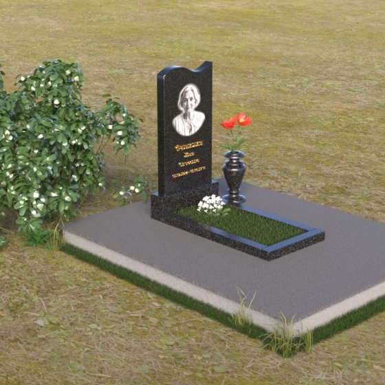Величественная стела ПВ 029 воплощает в себе гармонию простоты и изысканности. Ее силуэт, словно застывшая мелодия, устремлен ввысь, к небесам. Верхняя часть памятника имеет мягкий, волнообразный изгиб, напоминающий о плавности жизненного пути. Грани стелы тщательно обработаны, создавая игру света и тени, подчеркивая глубину и фактуру камня. Полированная поверхность черного гранита отражает окружающий мир, словно зеркало, напоминая о бренности бытия и вечности памяти. Нижняя часть стелы, переходящая в горизонтальную плиту, образует единое целое, символизируя прочную основу и нерушимость воспоминаний.
