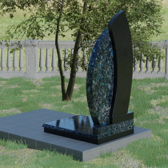 Геометрия модели выстроена на сочетании двух различных пород камня, что позволяет добиться уникальной глубины восприятия. Мы предлагаем этот проект в 8 цветовых вариациях, используя лучшие сорта природного материала: величественный гранит амфиболит, изысканный Балтик грин, мерцающий Блю Перл, классический Габбро-диабаз, насыщенный Дымовский, яркий Лезниковский, светлый Мансуровский или белоснежный мрамор Тассо. Такое разнообразие палитры — это не просто эстетический выбор, а возможность отразить уникальный характер и темперамент покойного, подобрав камень, который будет резонировать с его жизненным путем.
