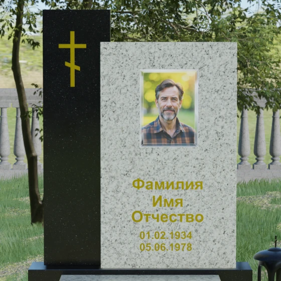 Кому подойдет: Благодаря своей строгой геометрии и асимметричному дизайну, этот памятник является универсальным и благородным решением. Лаконичность форм и отсутствие излишнего декора делают его идеальным для оформления мужского захоронения (отцу, мужу или брату), подчеркивая твердость и достоинство. В то же время, при использовании цветного гранита или светлого мрамора, модель прекрасно подойдет для женского или семейного мемориала. Это выбор тех, кто ищет баланс между традиционными символами веры и современной европейской архитектурой в ритуальном искусстве.