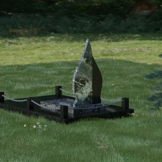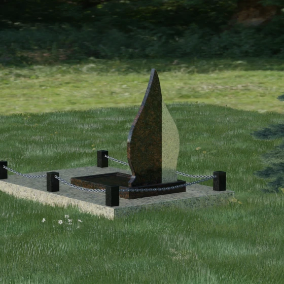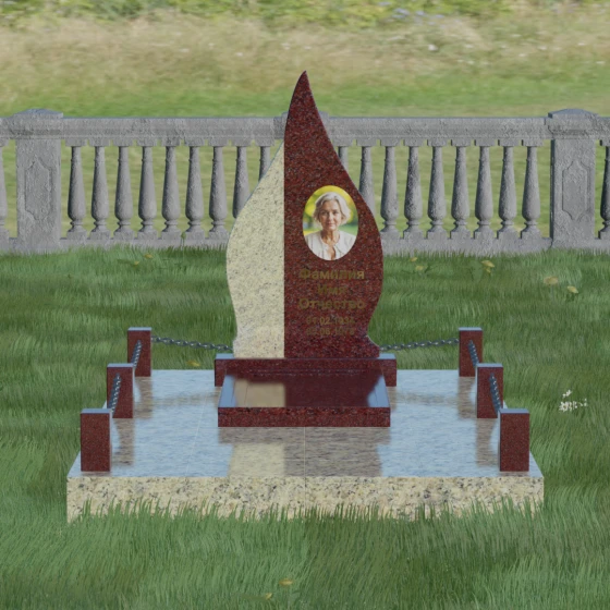 Выбор мемориального изделия — это всегда глубоко личный процесс, стремление выразить в камне ту нежность и уважение, которые мы храним в сердце. Модель 018 воплощает в себе гармонию и завершенность. Величественная стела выполнена в форме изящного, стремящегося ввысь пламени или капли, что символизирует вечный свет души и неугасаемую память. Асимметричная геометрия с мягкими, плавными изгибами лишена острых углов, что подчеркивает идею спокойствия и вечного упокоения. Особое внимание привлекает сочетание двух контрастных видов камня: светлая левая часть стелы с её благородной зернистой фактурой мягко огибает темную зеркальную сердцевину. Этот контраст создает визуальный объем и глубину, подчеркивая уникальность композиции и делая её заметной на фоне традиционных строгих форм.