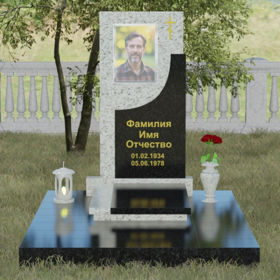 Модель Артикул 024 представляет собой законченное архитектурное решение. Стела установлена на массивный гранитный цоколь, который служит надежным фундаментом и придает всей конструкции необходимую устойчивость. Важной особенностью данного проекта является полное мощение участка: вместо открытого грунта используется сплошная надгробная плита. Это не только создает эстетически безупречный, аккуратный вид, но и значительно упрощает уход за местом захоронения, избавляя от необходимости борьбы с сорняками. В едином стиле с основным монументом выполнены дополнительные элементы декора: изящная каменная ваза, установленная на плите, позволяет приносить живые цветы, сохраняя гармонию композиции. Каменный бордюр по периметру участка четко очерчивает границы мемориала, превращая его в уединенное место для тихой молитвы и воспоминаний.