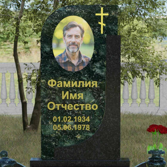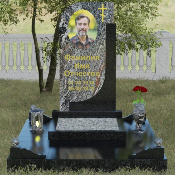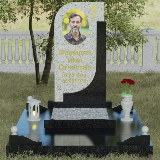Кому подойдет: Данная модель является универсальной и гармонично впишется в мемориальный комплекс как для мужчины, так и для женщины. Асимметричная форма с плавным изгибом придает памятнику определенную легкость, что часто выбирают для оформления захоронений матерей или жен. В то же время строгая вертикальная колонна и золоченая символика делают его подходящим для увековечивания памяти отца, брата или главы семейства. Это выбор тех, кто ценит эстетику минимализма, надежность натуральных материалов и хочет подчеркнуть преемственность поколений и крепость семейных уз.