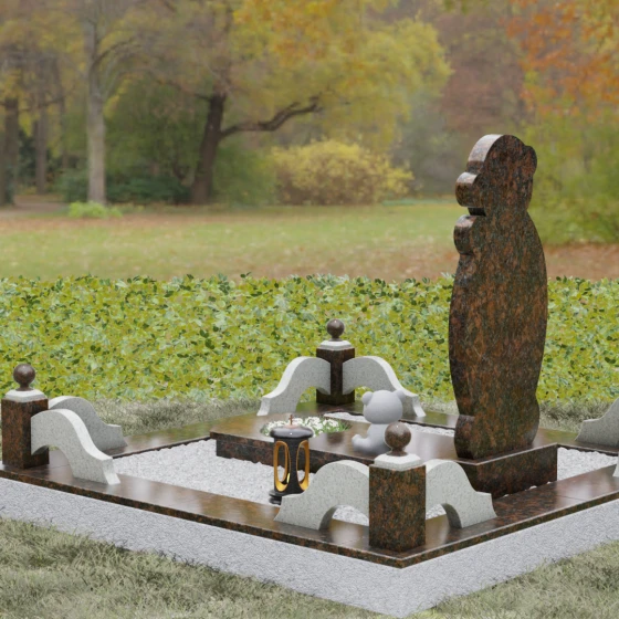 Для реализации этой идеи мы предлагаем выбор из 8 изысканных цветовых решений. В зависимости от желаемого настроения, вы можете выбрать один из семи видов гранита: строгий Габбро-диабаз, благородный Дымовский, контрастный Амфиболит, нежный Мансуровский, величественный Лезниковский, глубокий Baltic Green или мерцающий Blue Pearl. Также доступно исполнение из белоснежного мрамора Тассо. Такое многообразие позволяет подобрать камень, который будет максимально точно отражать характер и внутренний мир близкого человека, создавая по-настоящему персонализированный облик мемориала.