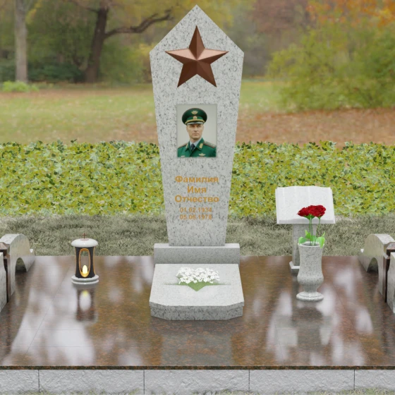 Строгие линии и острые углы навершия символизируют твердость характера, верность принципам и несгибаемую волю. Вертикальная направленность стелы олицетворяет духовный путь и стремление души к вечности. Звезда традиционно выступает символом высокого призвания, защиты и героизма, делая этот монумент идеальным выбором для оформления воинских и ведомственных захоронений.