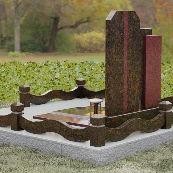 При изготовлении данного комплекса используется только отборное природное сырье, обладающее исключительными физико-механическими свойствами. Гранит заслуженно считается «вечным» материалом: его колоссальная плотность и минимальное водопоглощение гарантируют защиту от разрушения даже в условиях суровых зим с частыми перепадами температур. Камень не тускнеет, не выцветает под прямыми солнечными лучами и сохраняет безупречный блеск десятилетиями. Данная модель доступна в 8 цветовых решениях, что позволяет подобрать камень под характер и энергетику человека: