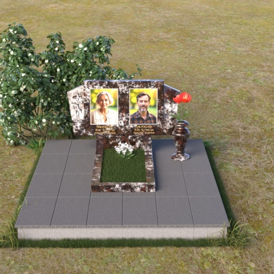 Оформление: Для этой формы надгробия идеально подойдет гравировка портретов в строгом, классическом стиле. Четкие линии и реалистичность изображения позволят сохранить в памяти облик усопших. Имена, отчества и даты жизни, выполненные элегантным шрифтом, дополнят композицию и придадут ей завершенный вид. Рекомендуется использовать шрифт с засечками, чтобы подчеркнуть торжественность момента.